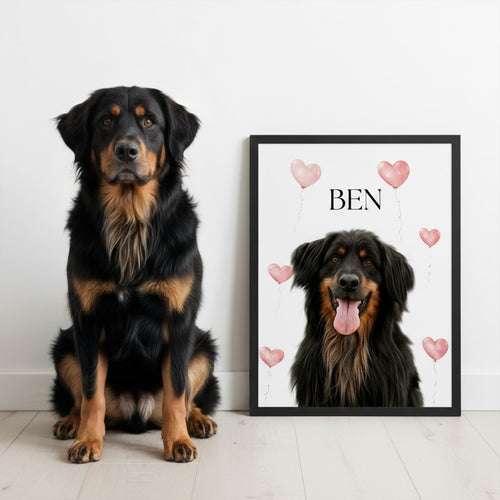 Här kan du förvandla ditt favoritfoto på ditt älskade husdjur till ett konstverk som verkligen sticker ut. Vi erbjuder flera fina stilar i färg eller svartvitt. Lägg till din egen text på din poster och välj om du vill beställa den med eller utan ram.
